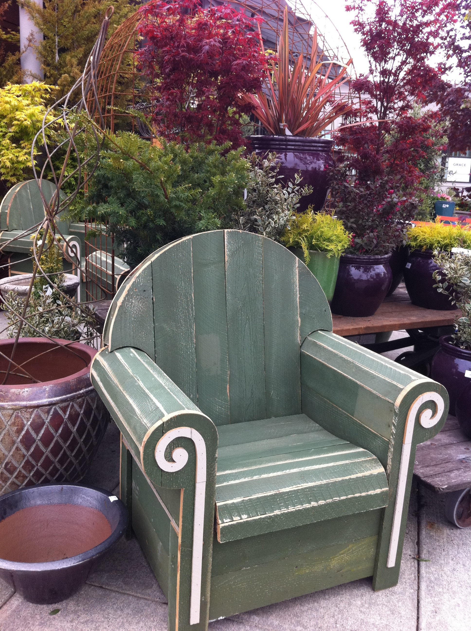 When I’m all done (Then again, when will that be? Afterall, one is never really “done” with a garden–it’s such an evolution) with my projects, perhaps I’ll reward myself with some fun garden future like this chair from Ravenna Gardens?