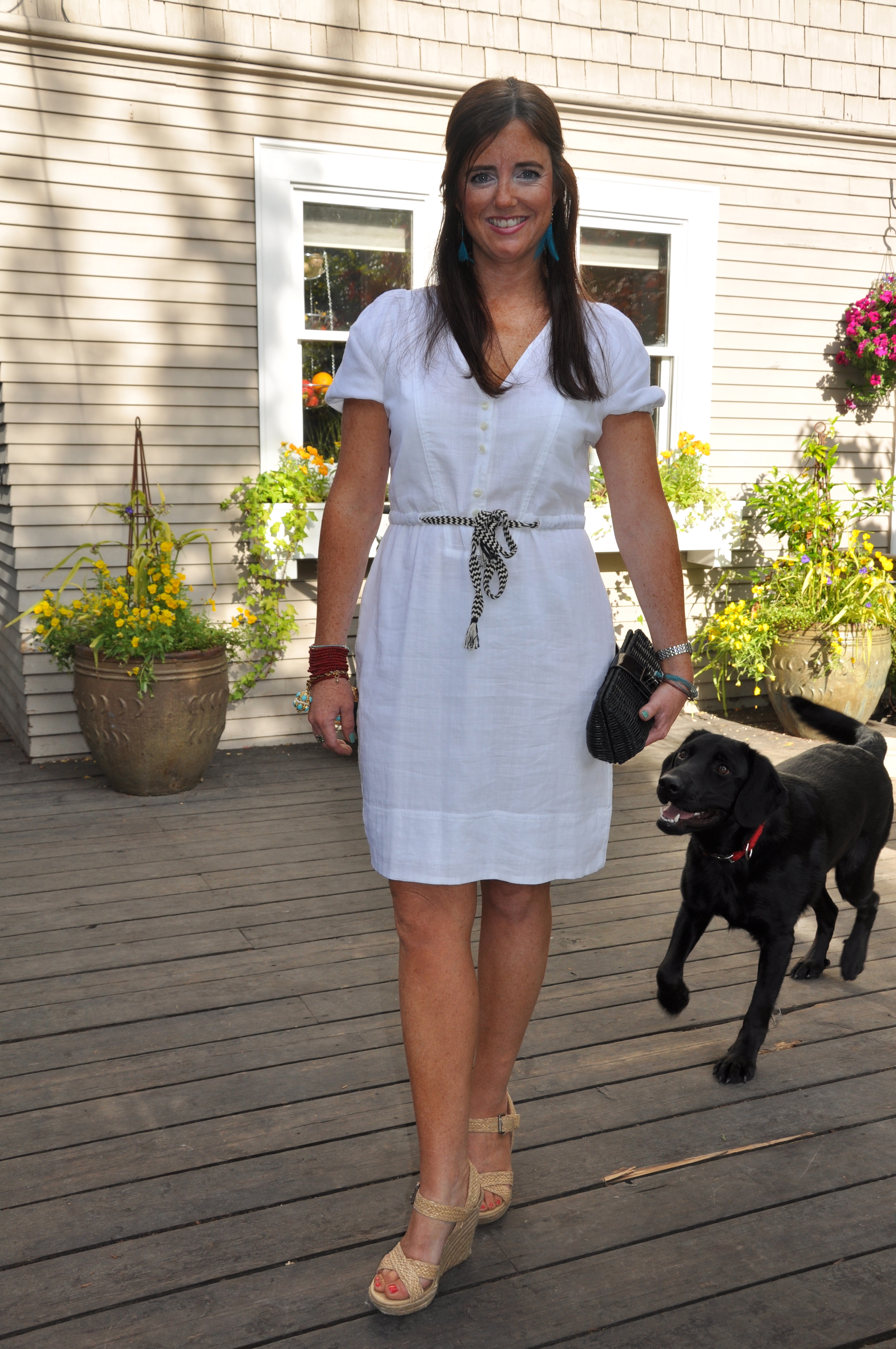 I can’t stop wearing white, like this little J.Crew frock (final sale for 69.99 less 30%, math was never my thing) with fun black & white tie to cinch the waist. Too good of a deal to pass up. Oh this dress is also featured in the latest People mag. style issue.