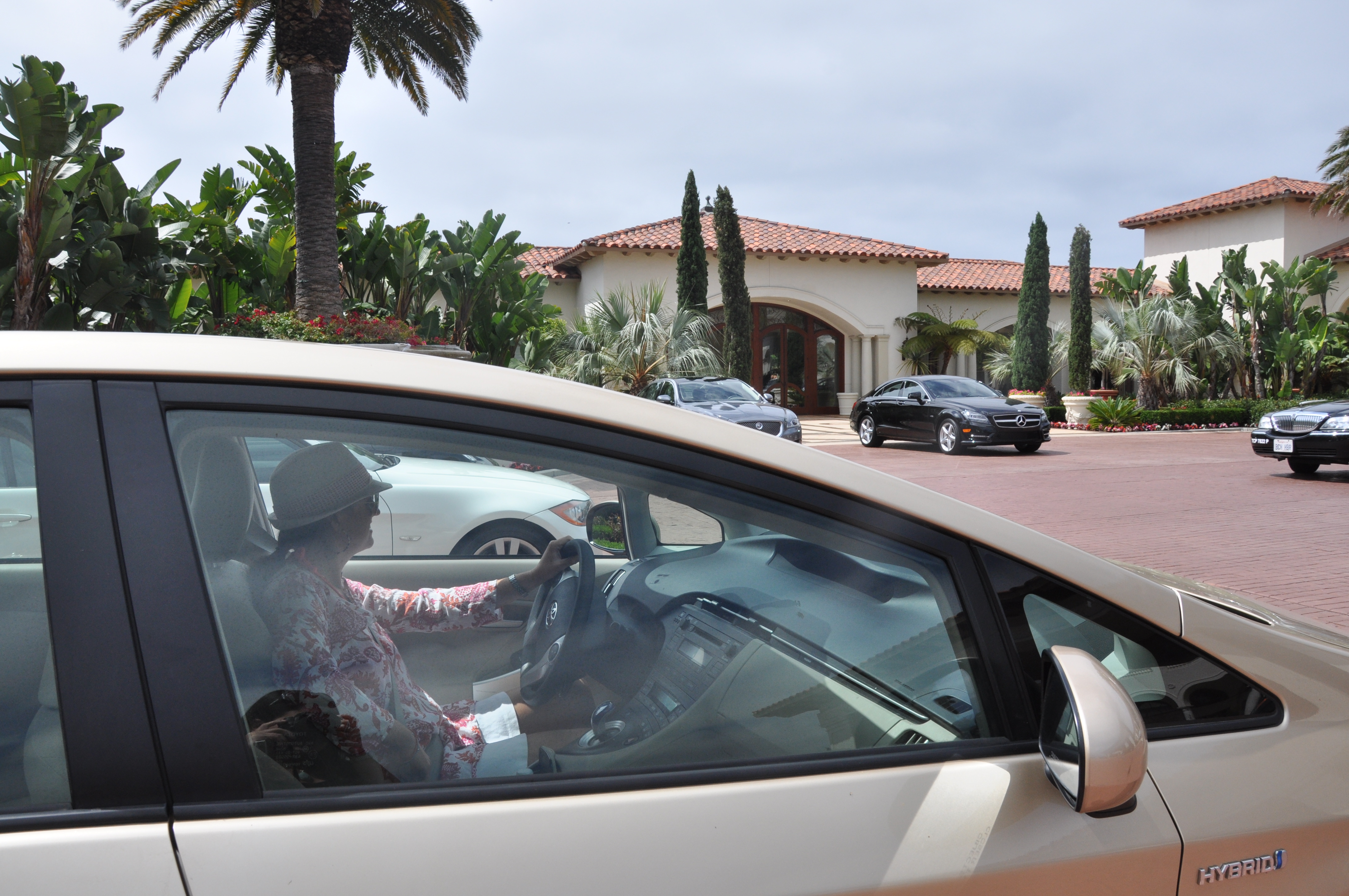 I put my hand on the wheel and my foot on the gas, making sure to not drive the rental Prius too fast. But we almost got whip lash we took off so fast.