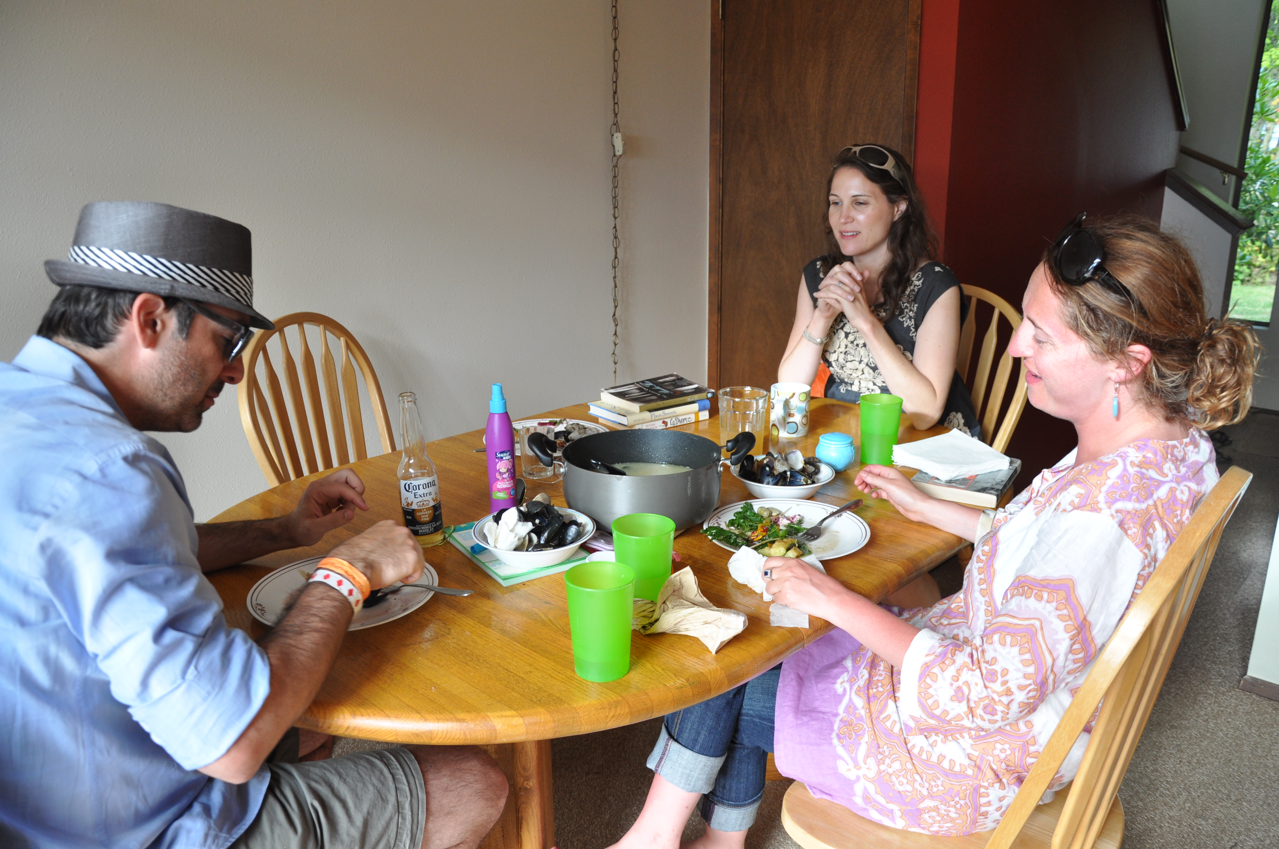 Mussels, and clams made in white wine back at the ranch taste divine. Thanks R. for filling our bellies with such good food and being the most gracious hostess.