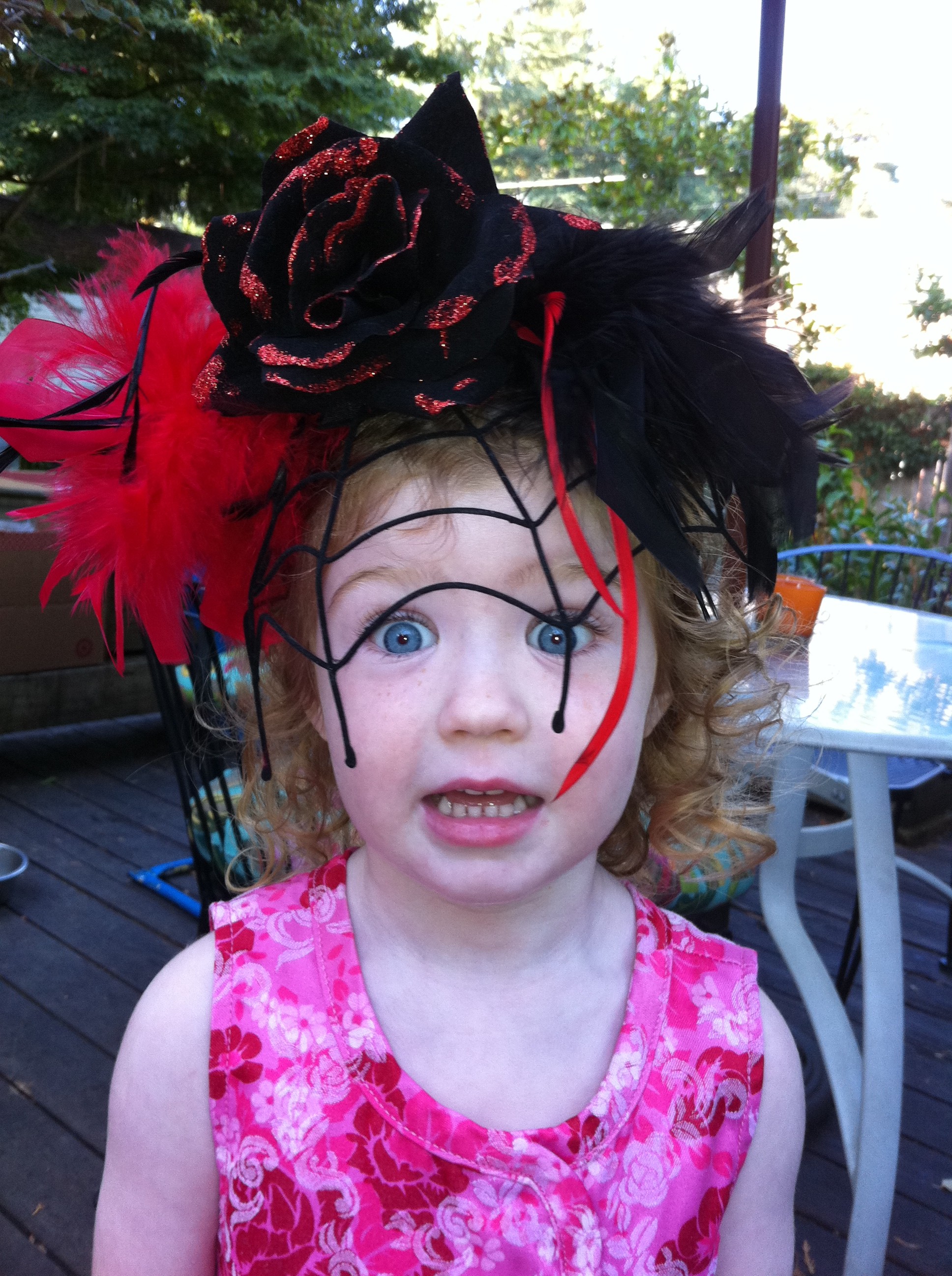 Check out spider girl with fascinator web head band. Sourced from Grandin Road. (Thanks Grandma)