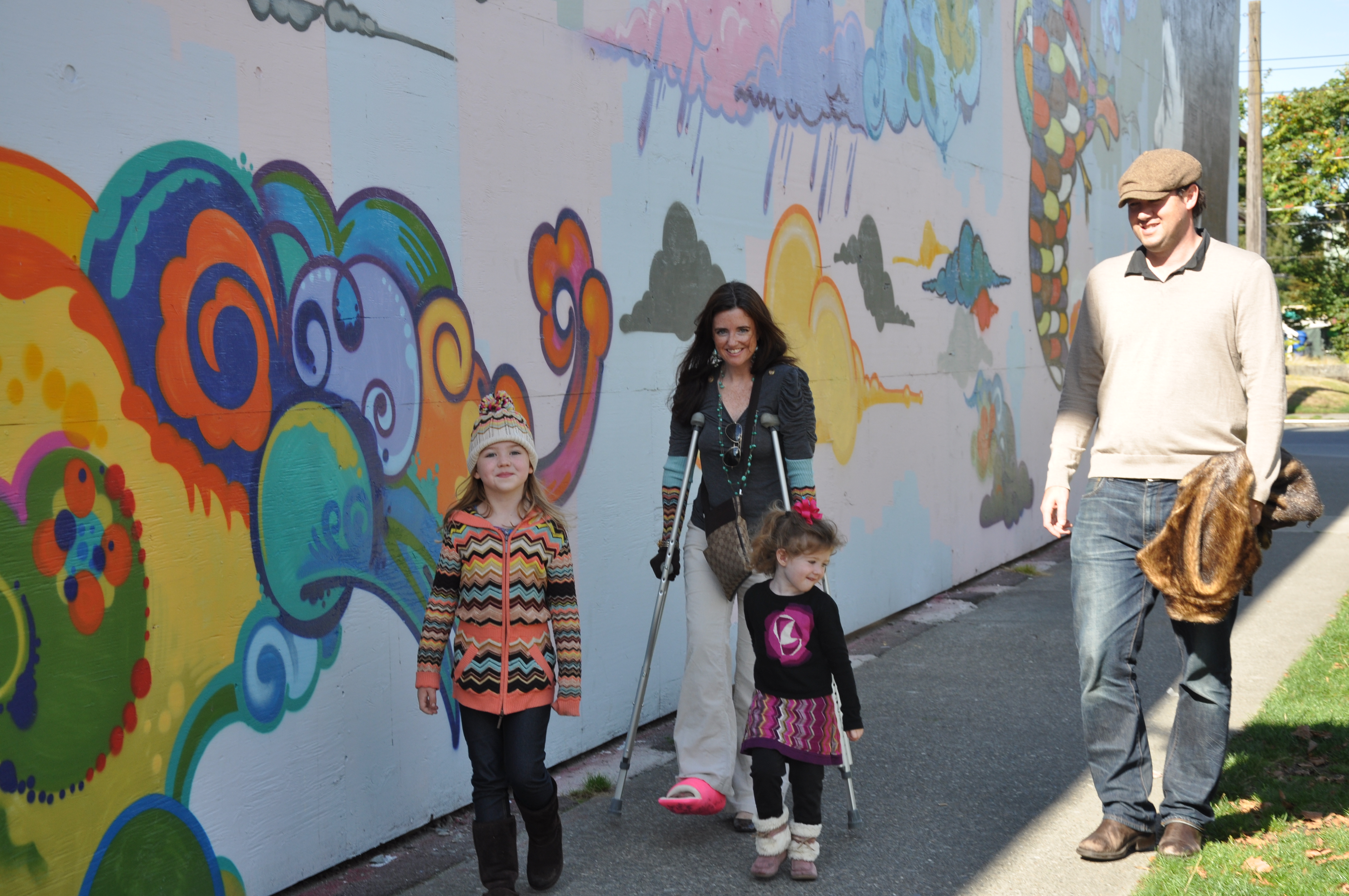 Here I am cruisin’ along on my crutches, ironically not long after this on my way up to my house, I fell for the first time on my crutches. Ugh, and multiple expletives later…now I’m back on the couch. Back to slow and steady.