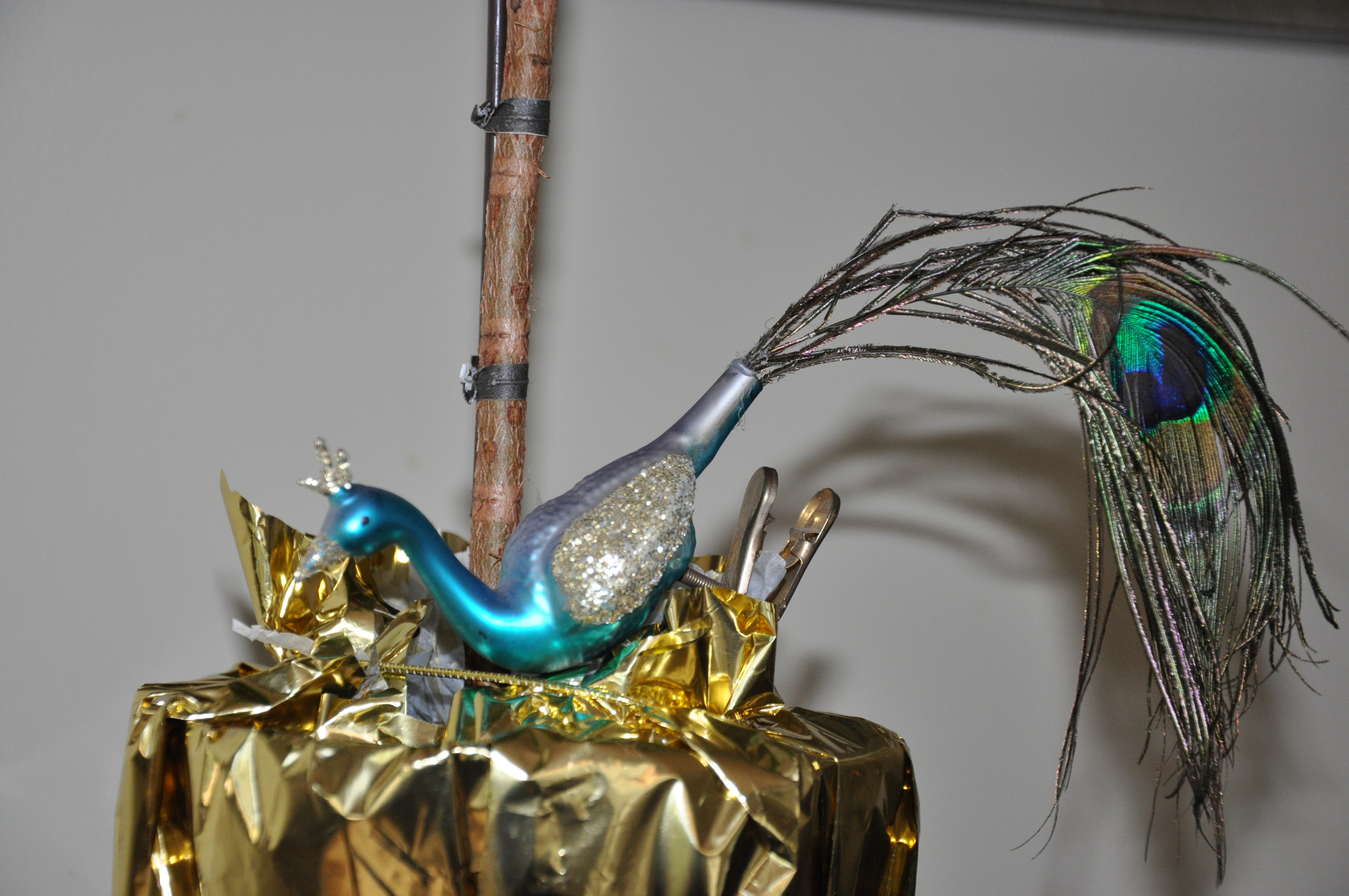 Isn’t the packing up of the ornaments, the ultimate drag? These peacocks need a little more time to strut their stuff.
