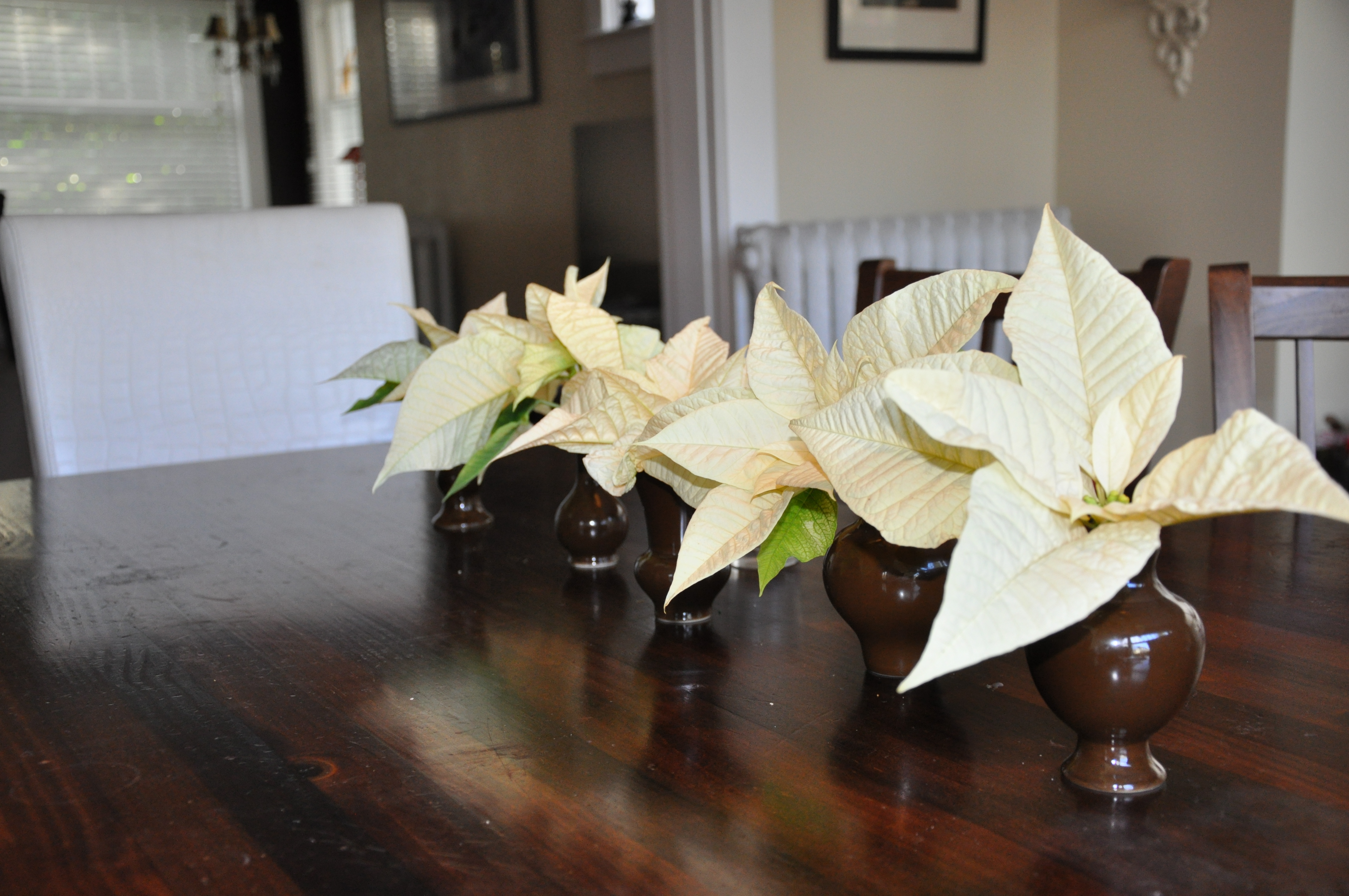 These darling little bud vases were dropped off at my doorstep without a card during the holidays. Took me a few days of sleuthing to figure out who they were from, once I did it was just the best surprise…aren’t they darling? Clipped off a few poinsettia buds as the whole plant was on its way to the garbage. Super cute eh? Thanks so much Steph.