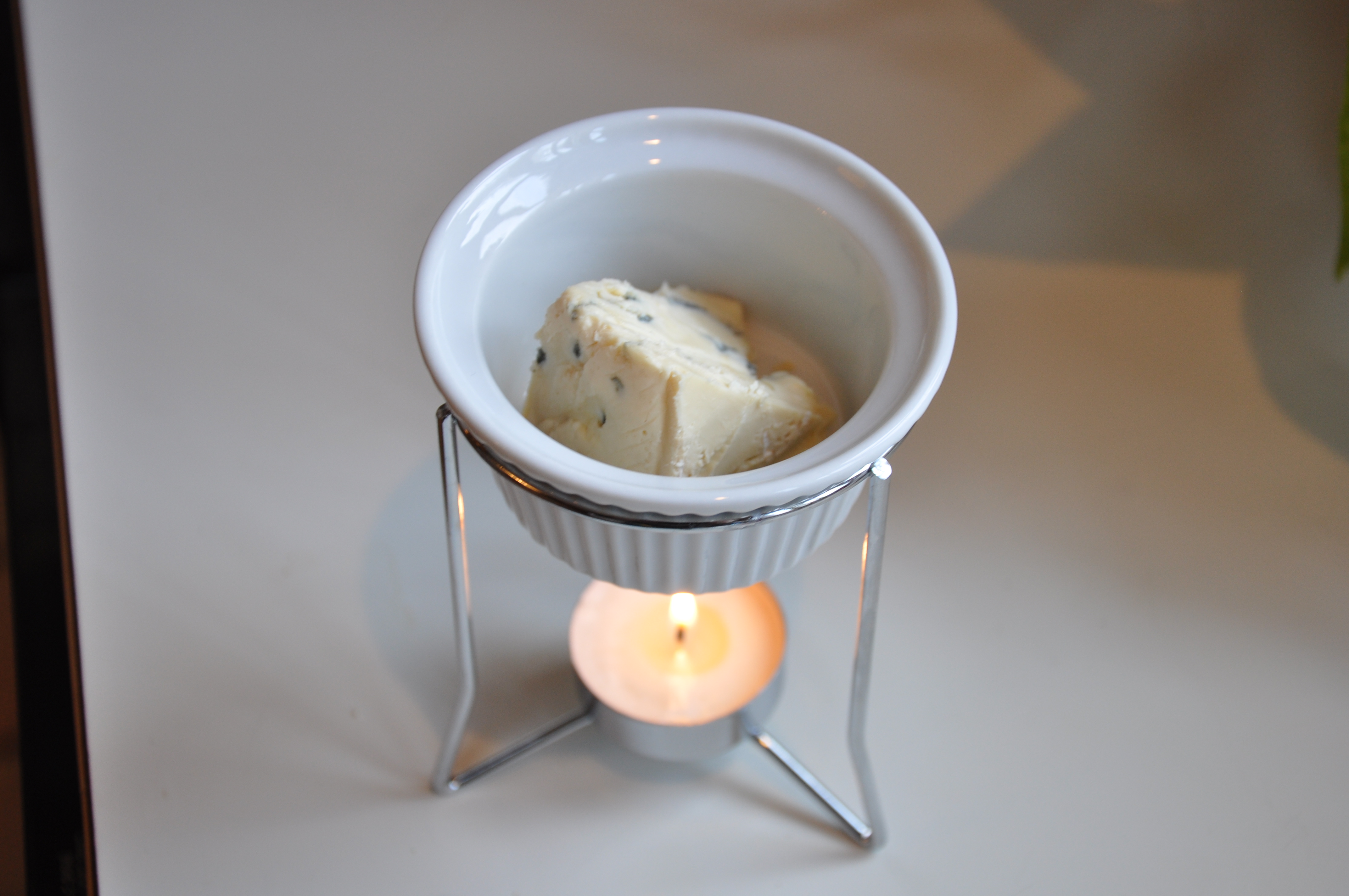 1.Simply place a hunk of Cambozola into a butter warmer (these are handy to have for crab bakes, lobster boils, etc.)