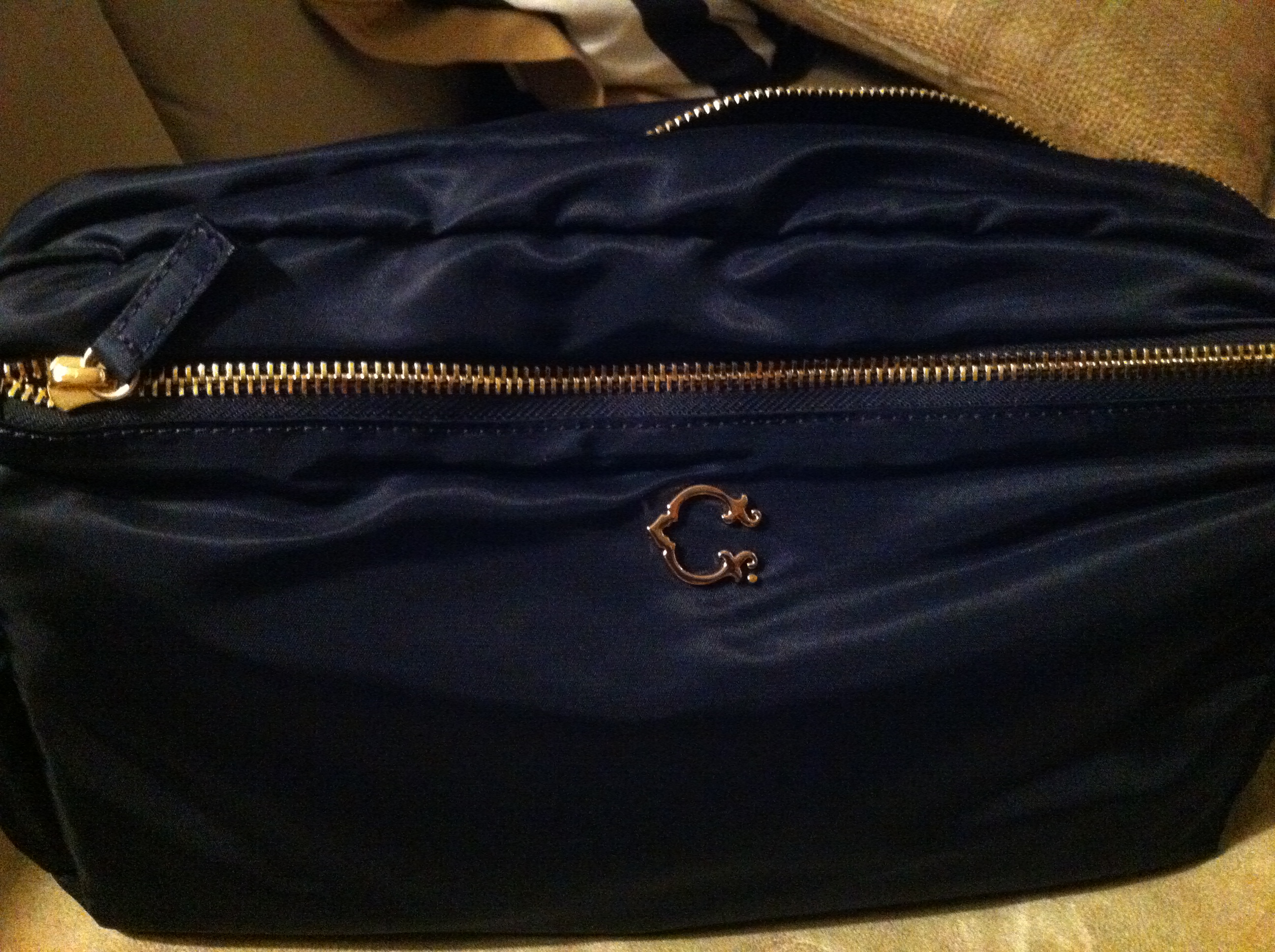Speaking of trips, this “C” monogrammed cosmetic case rocks, don’t you think? Fits everything even my flat iron, bu-yah!