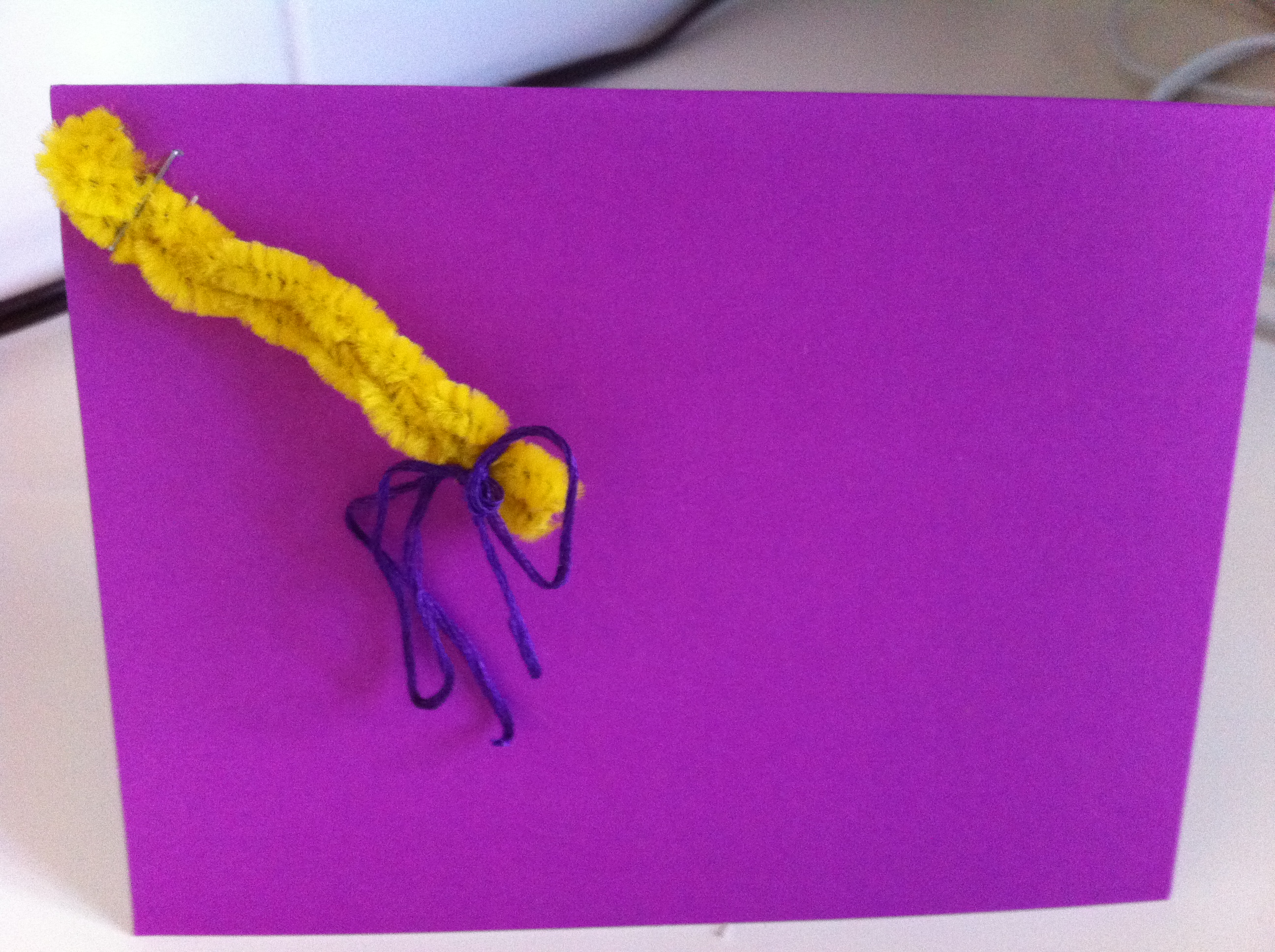 Of course all these presents require thank you notes, so we bought simple purple note cards from Target and added a pipe cleaner detail for one last fun Rapunzel touch.