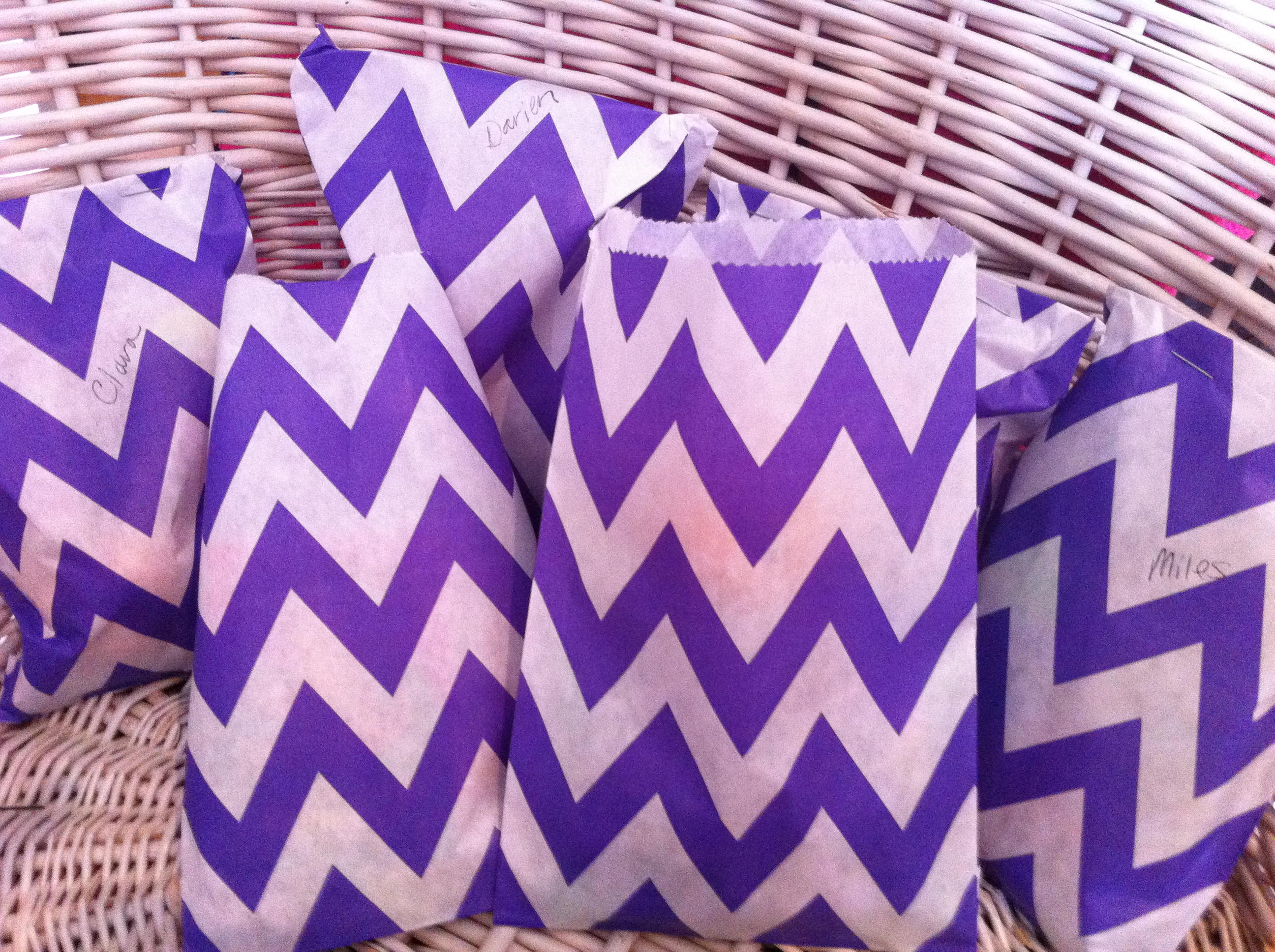 She may get Disney princess, but I get CHEVRON (nope, still not sick of it, though perhaps a tad over played). These bags purchased at The Confectionery.