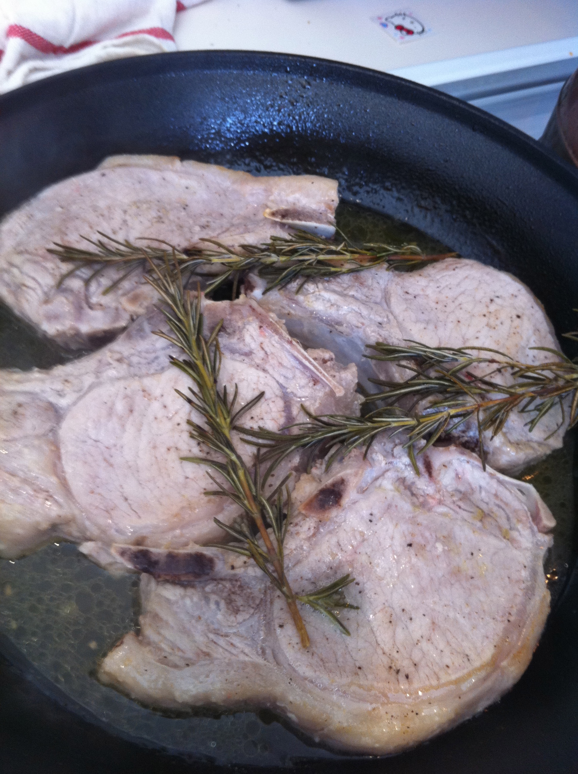 I’m a sucker for recipes that require just a few quality ingredients and not much tedious prep. This one hits the mark. You (not you, but you know, the chops–though it would be fun to bathe in buttermilk:) are basically marinating in buttermilk for a few hours before cooking, then doing a simple sear and oven roast. Easy peasy. He also made an amazing sauce but that one is an original and for the vault. All chefs need to keep some for themselves:)