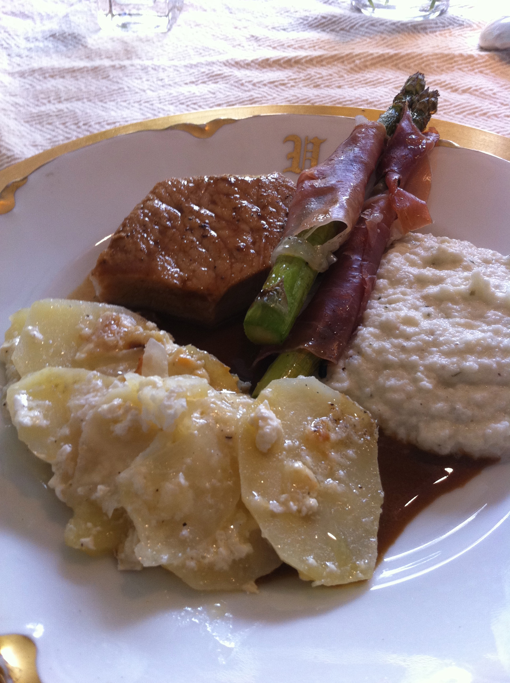 Everyone else wanted scalloped potatoes as well, so that was served up too– Chefie riffed off an oldie but goodie Martha Stewart recipe.