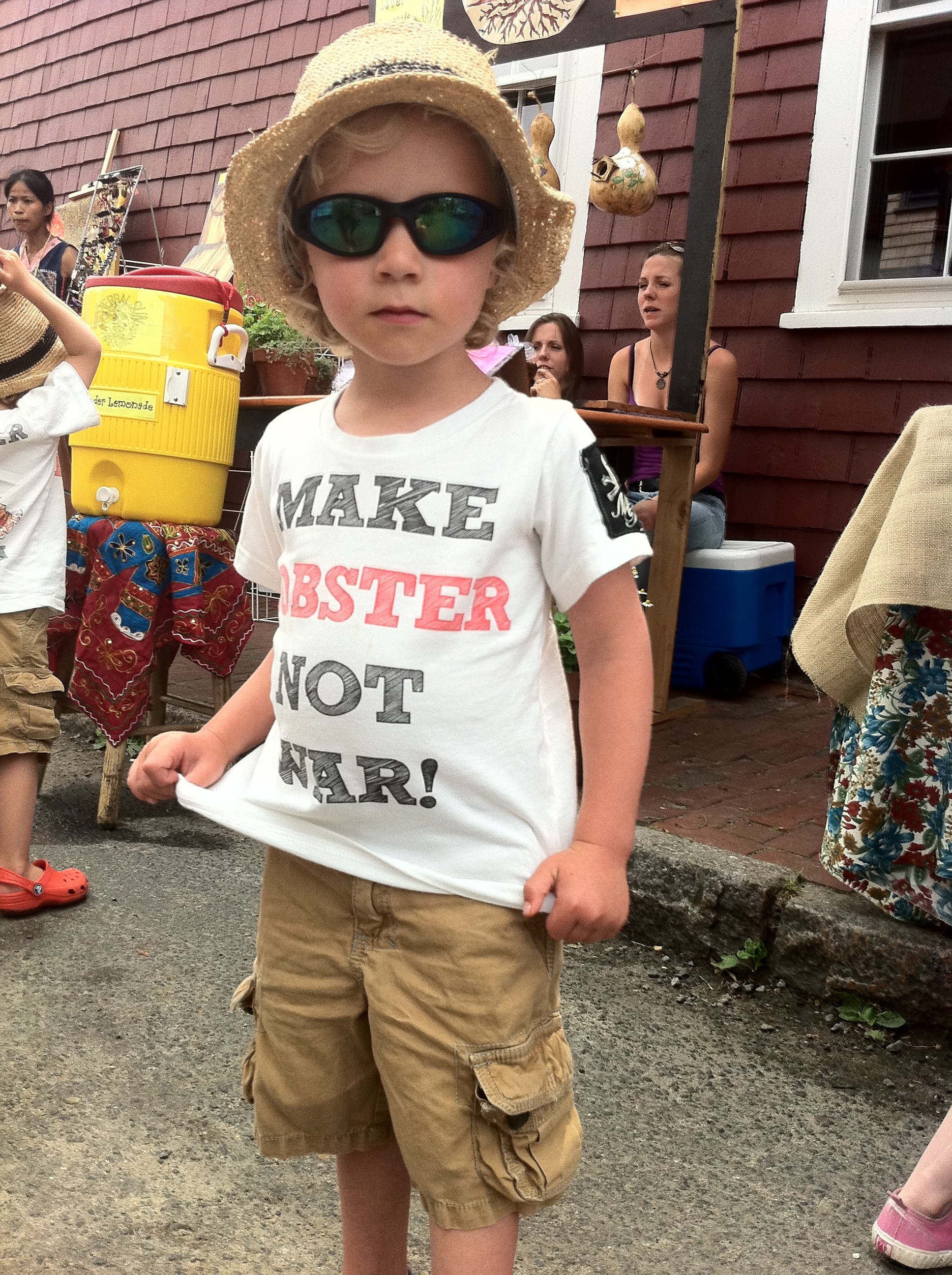 How rad is our little buddy Hart’s shirt, Make Lobster Not War! Don’t you love how totally serious his expression is?