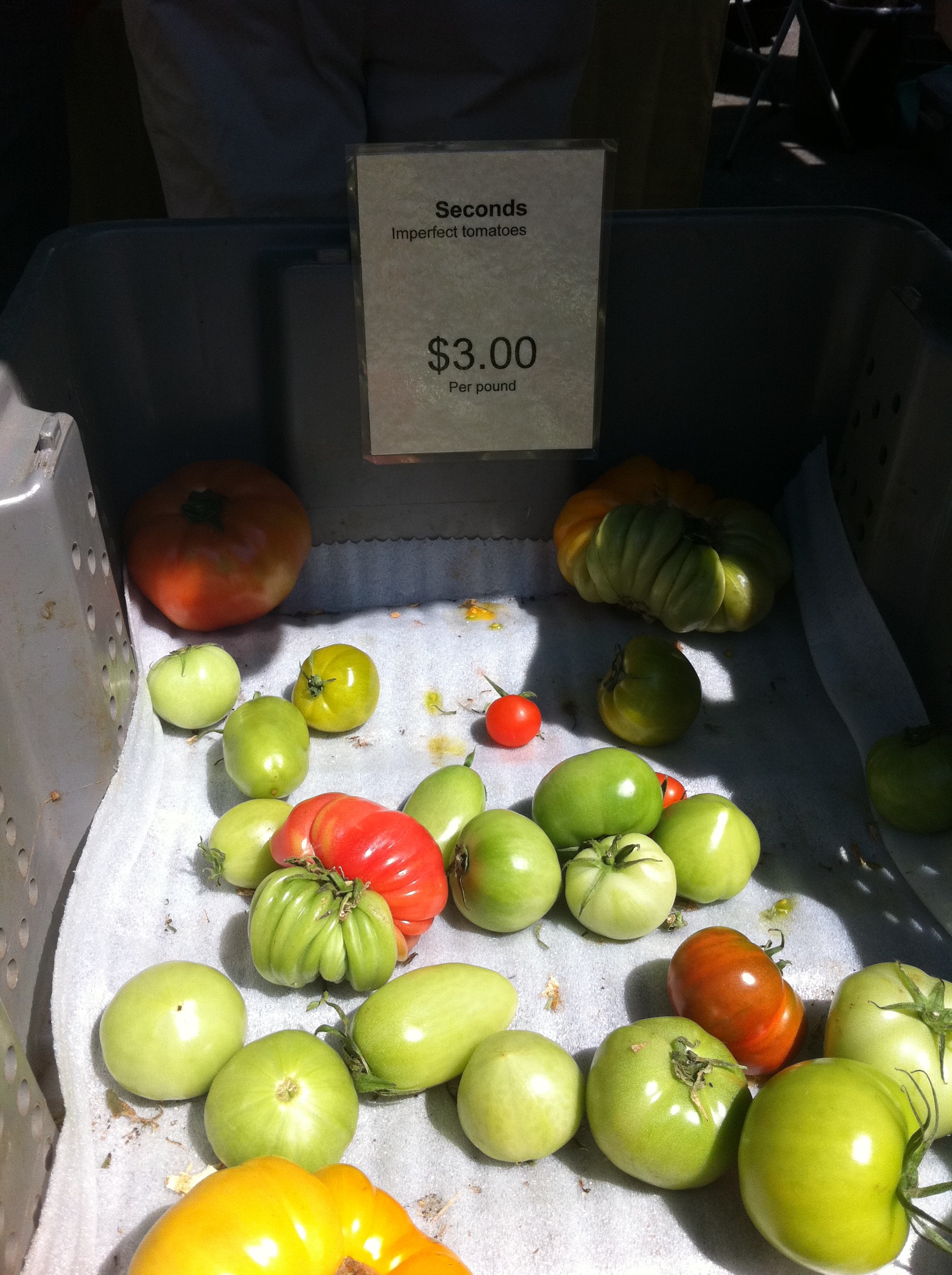 “Bargain” deals like this heirloom seconds for $3.00 a pound. Wait a sec., that’s still expensive!