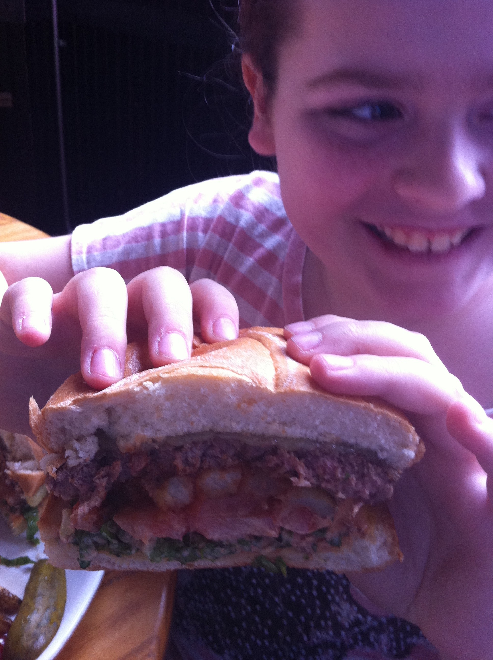 Again,”marketing” (verb here) can really expend a lot of calories and work up the appetite. So into The Red Door for some final sustenance. This place handles young and old(er:) well too–they even cut off the crusts from my youngests pb&j without even asking, now that is intuitive. A burger with french fries in it? Yes, please.