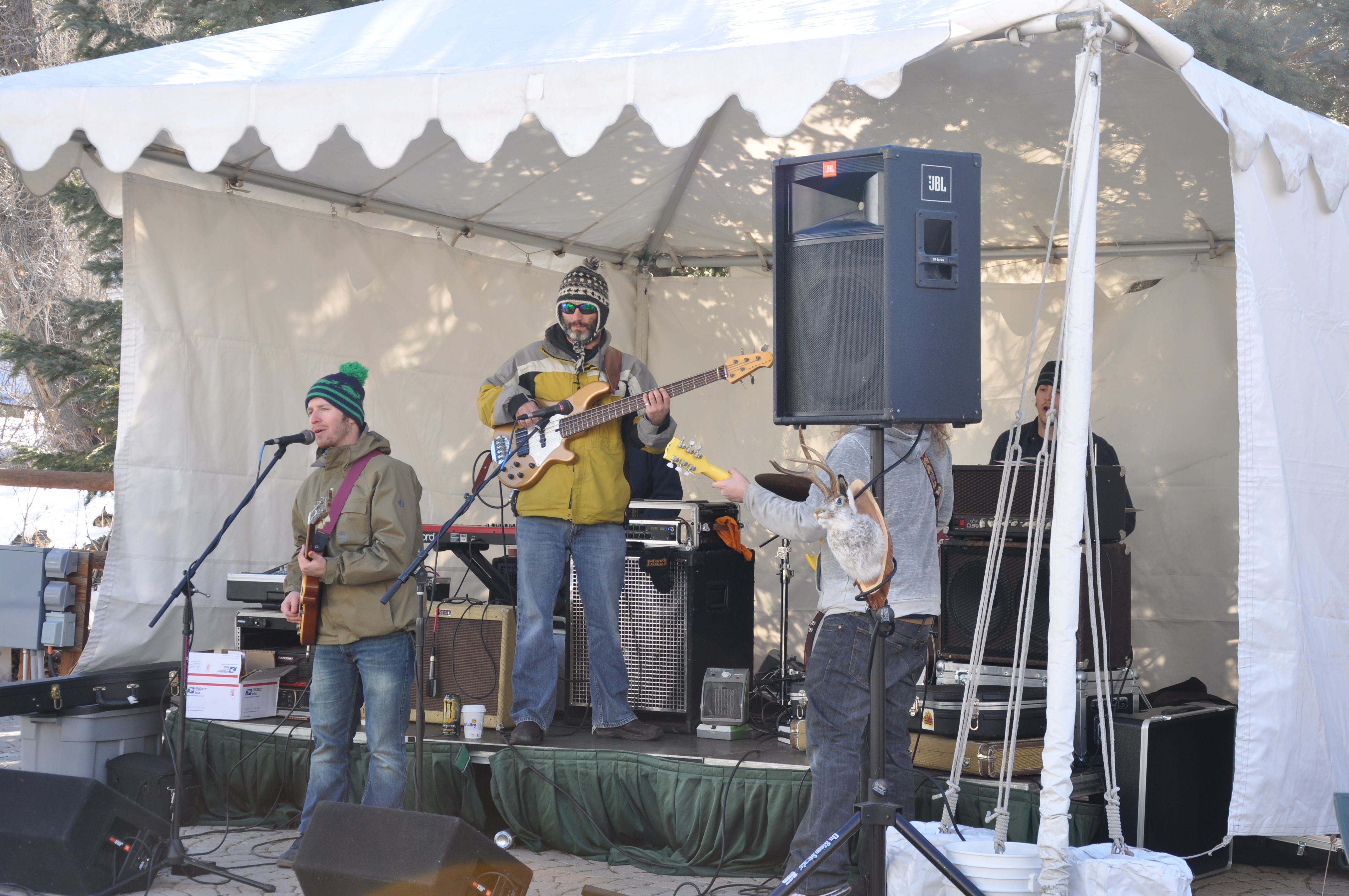 This shot was taken outside Warm Springs during an apres-ski outdoor concert. Note the retro plastic shades, Sorels, trucker hat (these only work in ski towns, fyi) and retro can of Coors.