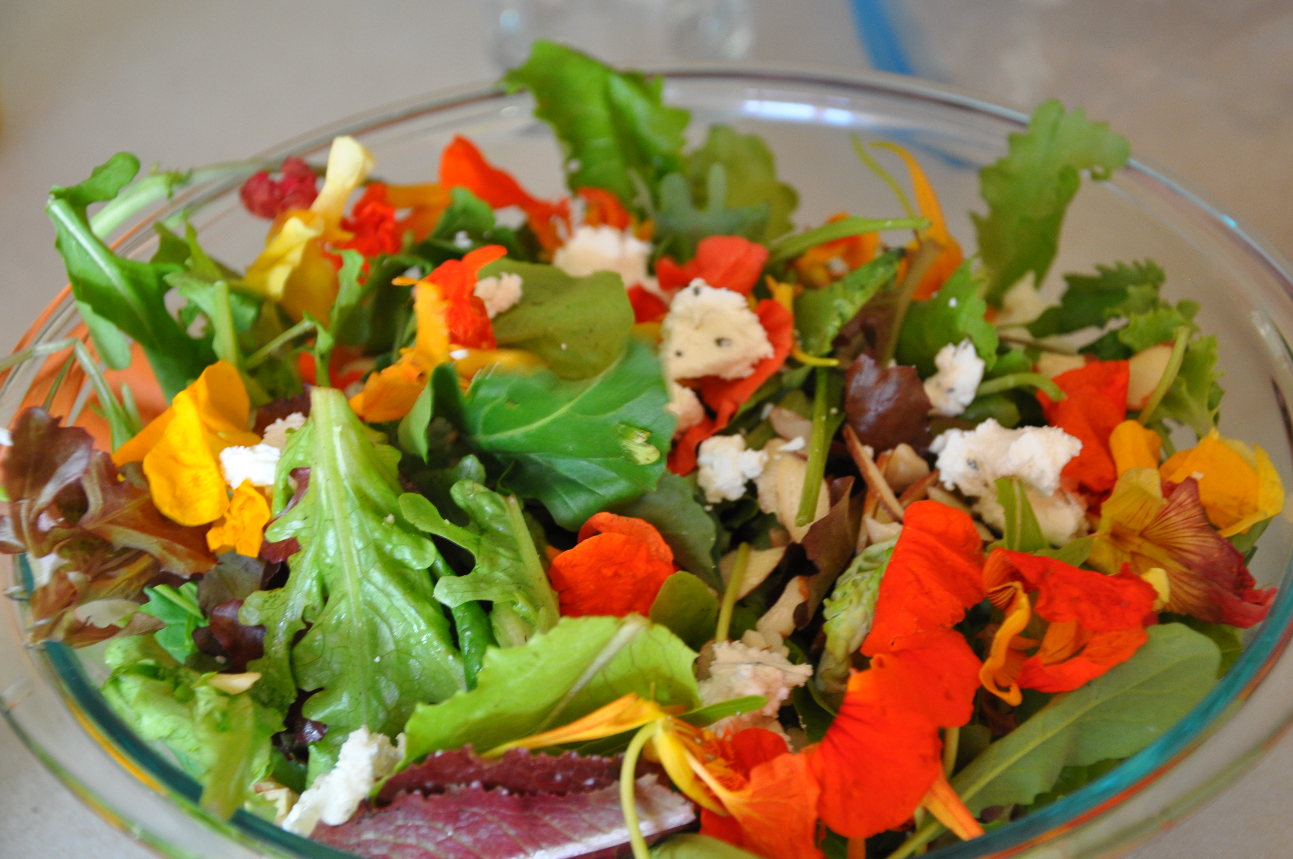 One of our first meals included BEAUTIFUL greens with gorgeous edible flowers.