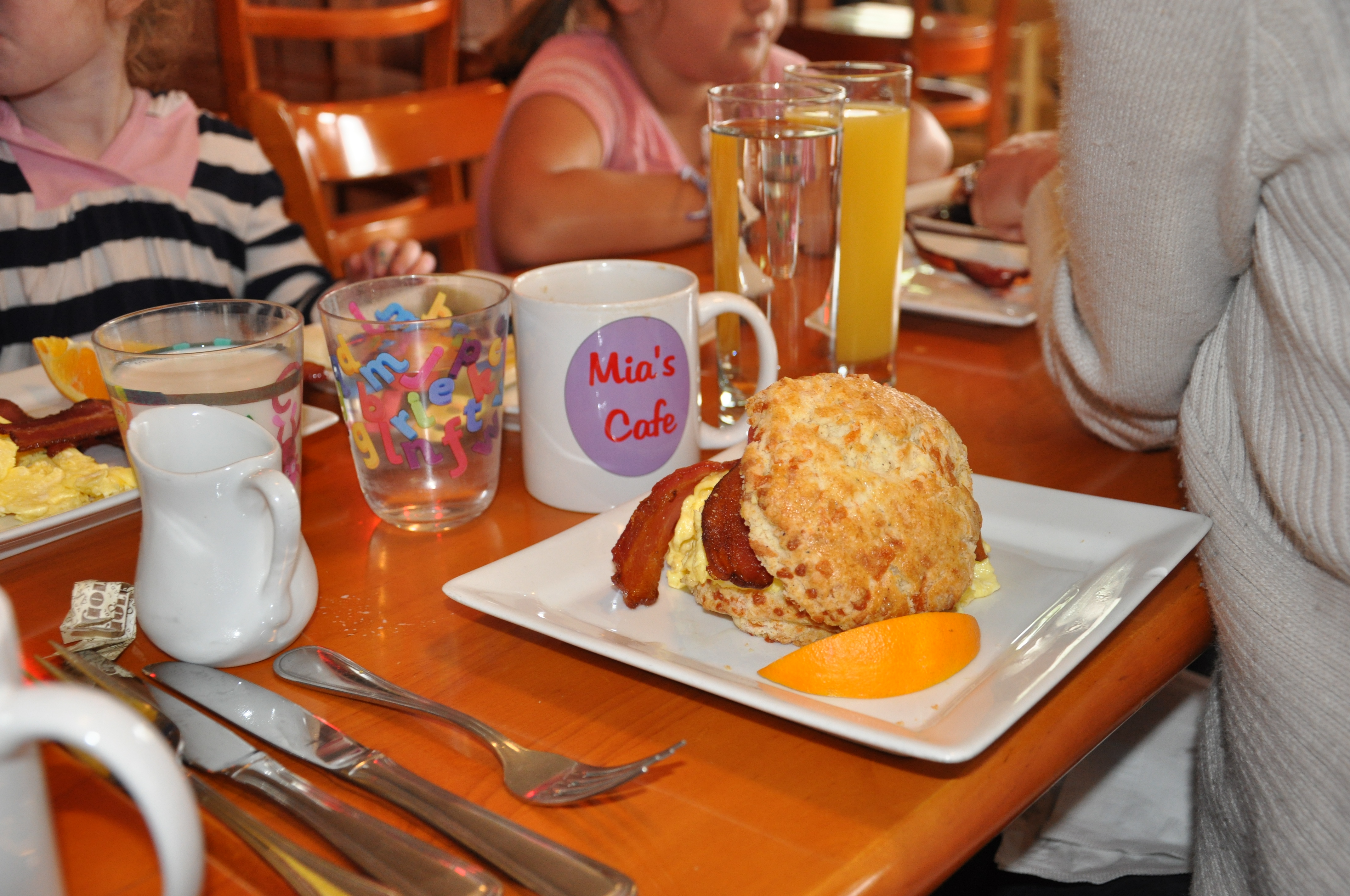 Early in the morning, one must promptly get into town to Mia’s Cafe. Do you like the beverage trio here of Mimosa, coffee and water? Why get one bevvie when you can have three?